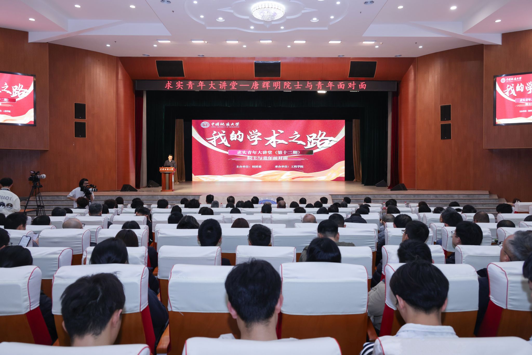 (通讯员 张金声 欧阳嘉仪 摄影 李锐欣)3月12日,工程学院与校团委联合举办第十二期求实青年大讲堂。中国科学院院士、国家级教学名师、我校工程地质学科首席教授唐辉明以《我的学术之路》为题,与青年学子面对面交流。工程学院全体院领导、教师代表及全校一千余名青年学生参会。校团委书记王向东主持报告会。